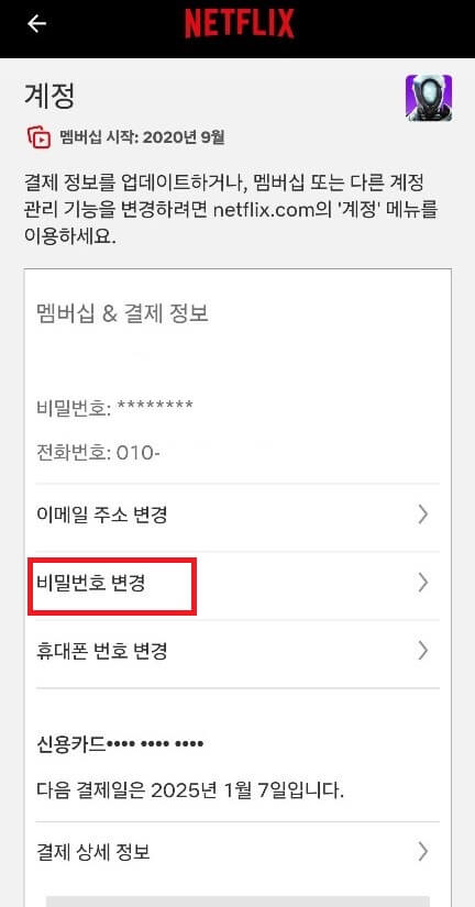 "계정 페이지"에서 "비밀번호 변경"으로 이동합니다.